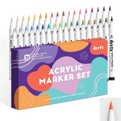 Aukštos kokybės nenuplaunami akriliniai markeriai-flomasteriai ARRTX yra skirti piešti ant įvairių paviršių, tokių kaip popierius, kartonas, drobė, įvairios sudėties audinys, stiklas, keramika, plastikas, medis, akmuo ar kitų. Komplektą sudaro 36 flomasterių. Juos galima naudoti iškart, nereikia nei suplakti, nei spausti. Flomasteriai saugūs, bekvapiai, berūgščiai, pagaminti vandens pagrindu. Šis rinkinys yra puiki dovana visiems, tinka margučiams, velykinėms dekoracijoms, kalėdiniams sveikinimams, Helovino moliūgų piešimui, kaligrafijai, gimtadienio dovanoms, atvirukams ir įvairiausiems „pasidaryk pats“ rankdarbių projektams.